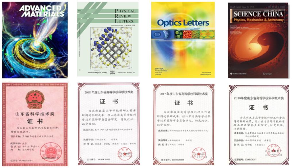 科研成果丰硕。近年来,在《中国科学》《Phys. Rev. Lett.》《Opt. Lett.》等国内外权威刊物上发表研究论文300余篇,其中200余篇被SCI、EI收录。获山东省自然科学奖2项;山东省优秀教学成果奖4项;山东高校优秀科研成果5项;山东省科学技术奖1项;菏泽市自然科学优秀科研成果一等奖10余项;beat365平台官方网站优秀科研成果一等奖10余项;授权国家专利30余项。主持国家自然科学基金项目6项,山东省自然科学基金项目9项,山东省高等学校科技计划项目5项,山东省高等学校实验技术研究课题1项,beat365平台官方网站科研基金项目30余项。9门课程被评为省级精品课程,1门课程被评为省级一流课程,1门课程被评为省级继续教育数字化共享优质课程,16门课程被评为校级精品课程,3门课程被评为校级一流课程。