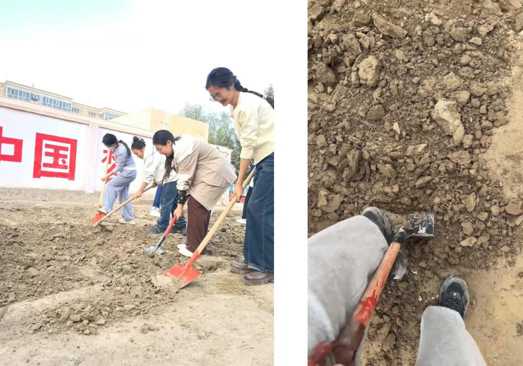 “只有荒凉的土地,没有荒凉的人生”,为了改善学校风沙肆虐的环境,国庆假期期间在带队老师冯书记的领导下在英吉沙县第二小学开展了绿化种植活动,同学们和老师一起齐心协力,共同合作,完成了翻地耕地播种,为学校角落一片荒凉的土地上增添彩色的花朵,也为新疆留下了属于我们的绿色。