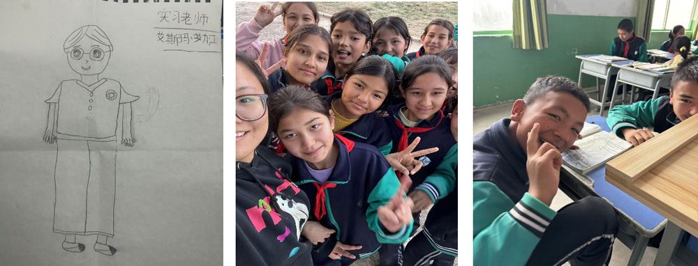 这个小小的县城有着蓝蓝的天空,那是没有一朵云的。这里的学生可爱、美丽、大方、热情、勇敢、真诚,他们对每个来支教的老师充满了好奇,于是我有了各种名字,他们笑起来眉眼弯弯像太阳一样温暖。在教学过程中,我发现新疆的孩子们非常积极乐观、聪明好学。他们虽然生活在艰苦的环境中,但对知识的渴望却丝毫不减。当我第一次以老师的身份,站上三尺讲台,向底下的孩子们介绍我自己时,看着讲台下坐得板板正正的孩子们,眼睛亮晶品得发着光,稚的脸庞上洋溢着纯真的笑容,我的内心被一股无名的喜悦和满足填充着。在那以后无数个瞬间,我深刻地感受到教师这个行业的神圣感和责任感。当我以老师的身份站上讲台,总是情不自禁的对学生们多叮嘱几句,我想这就是三尺讲台的魅力。