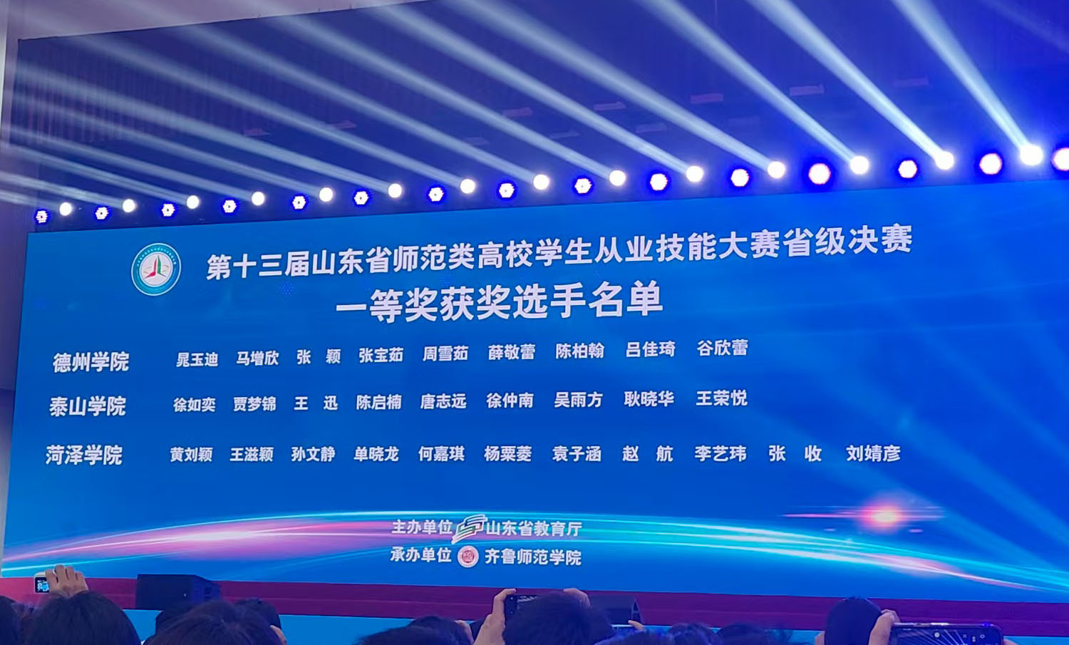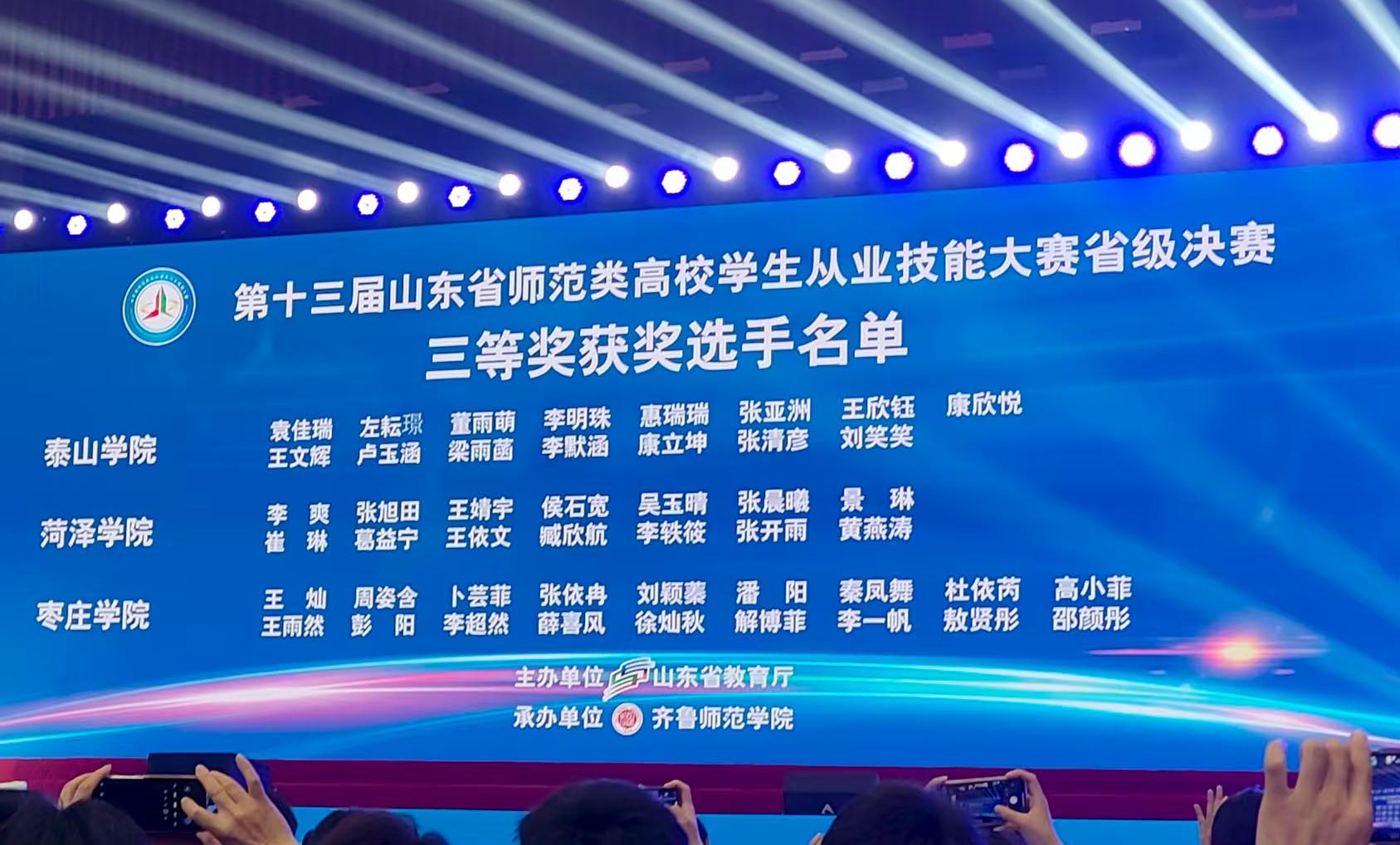近日,在山东省教育厅主办的第十三届山东省师范类高校学生从业技能大赛中,beat365平台官方网站选手表现优异,斩获高中物理组一等奖1项、初中物理组三等奖1项,同时1位教师荣获“优秀指导教师”称号,实现了学院在该项赛事中的历史性突破。
