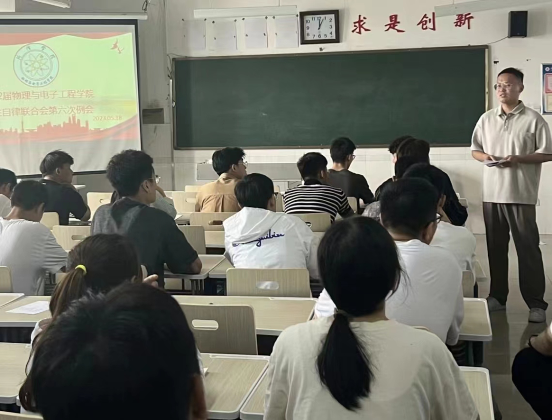 会上,辅导员李晨强调,同学们要严格遵守各项纪律要求,做到不早退,不迟到,保持个人和教室卫生,作为学生干部要率先垂范,展现蓬勃向上的大学生精神面貌。李晨表示,近期我校陆续发现阳性病历,若有学生身体不适,需尽快前往学校保健科进行诊断,确诊后根据医生建议进行隔离治疗。高考即将来临,李晨要求学生签订考试承诺书,确保“诚信考试,平安高考”,不做助考、替考等违法违纪行为,为自己和他人负责。最后,李晨强调,学生干部需时刻注意言行举止,切勿卷入网络舆论的漩涡,禁止在社交平台发布不正当言论,理性上网,共同营造良好文明的互联网氛围。随后,马国梁对宿舍人走未断电及吸烟等违纪现象进行了明确要求,严禁违规现象再次发生。