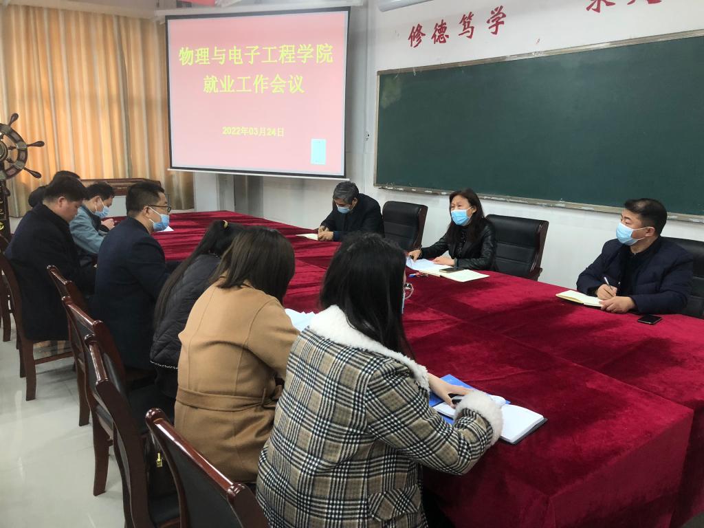 为进一步做好2022届毕业生就业工作,3月24日下午,beat365平台官方网站召开毕业生就业工作会议。物理与工程学院党委书记刘燕、院长徐兴磊、副书记杨宏宇、毕业班班主任及辅导员参加会议。