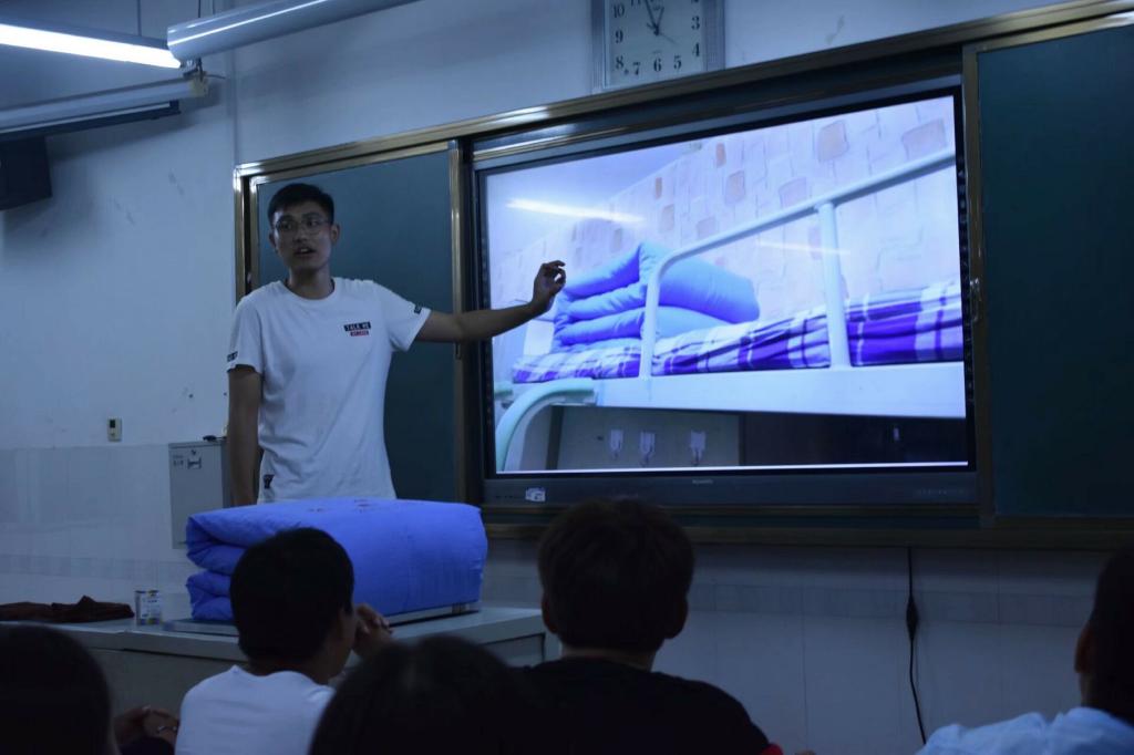(编辑人员:黄智豪)为加强精神文明宿舍建设,有效督促、激励广大同学营造良好的生活环境,养成良好的生活习惯,营造温馨、整洁的学习、生活环境,beat365平台官方网站学生会宿管部于2018年9月27日晚7点在综合实验楼举行了2018级新生叠被子教学实践活动。