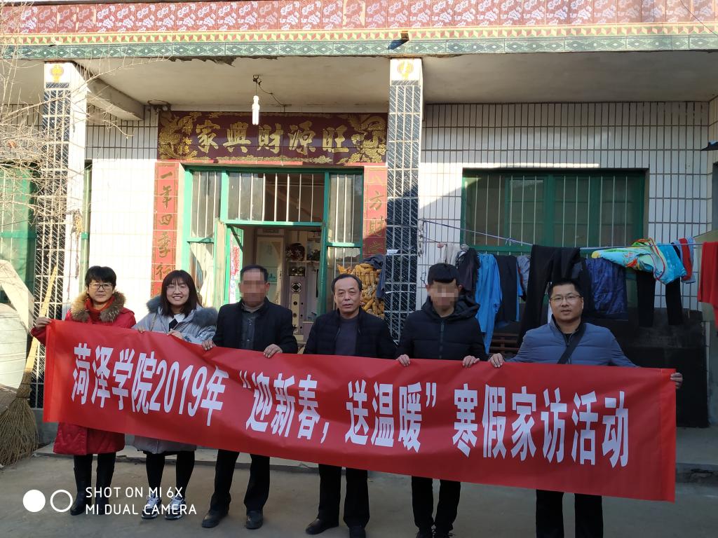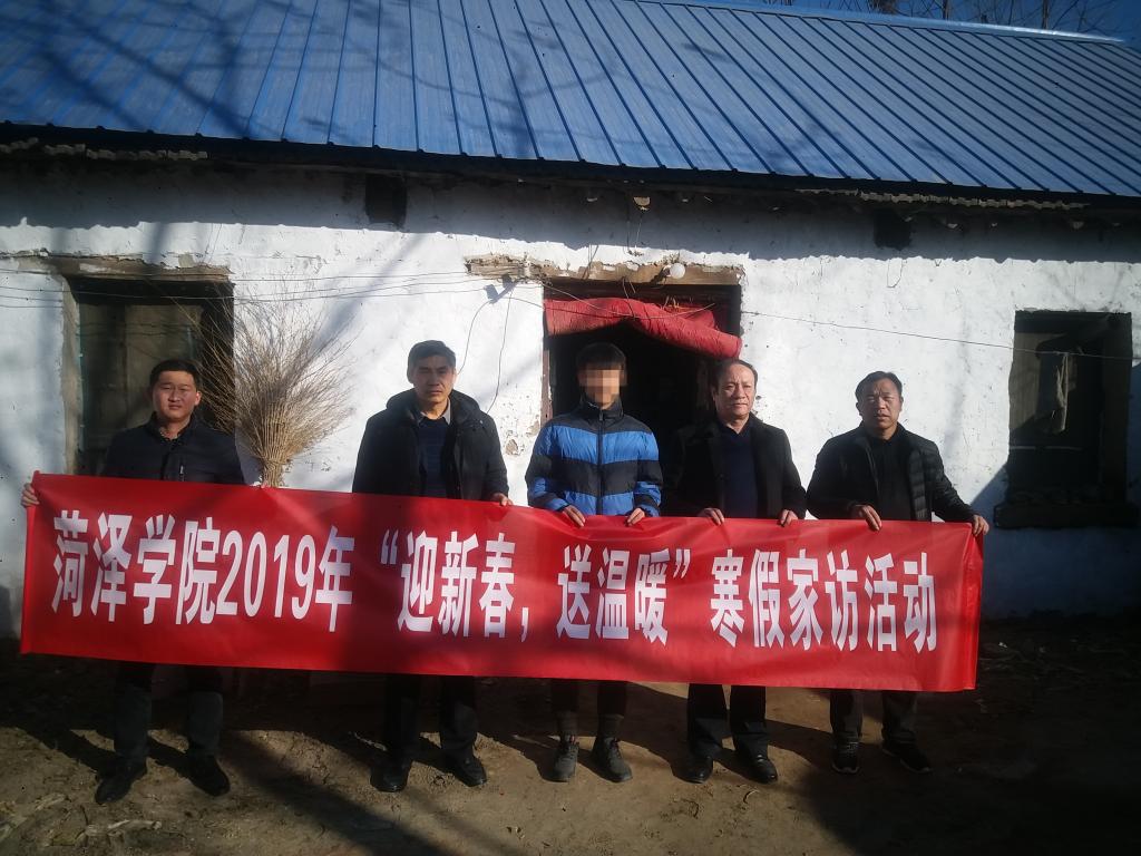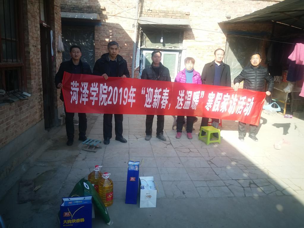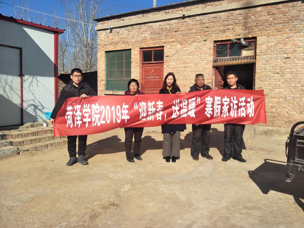 为进一步促进学生发展,构建良好家校合作机制,完善资助育人体系,落实高校立德树人的根本任务,按照《beat365平台官方网站2019年寒假家访活动实施方案》的具体要求,beat365平台官方网站精心组织并扎实开展了寒假家访活动。1月22日,学院领导班子及全体辅导员、班主任代表组成了3个家访团队,分别赶赴单县、曹县、巨野县、东明县等地进行了家访活动。