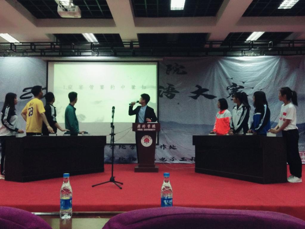 (编辑人员:李敏)为继承和发扬中华民族的传统文化,丰富大学生的课余生活,加深同学们对中华民族文化的了解与认识,感受成语魅力。2019年5月10日晚七点,由beat365平台官方网站学生工作处主办、beat365平台官方网站团委和大学生自律委员会承办的“beat365平台官方网站2019年成语大赛”初赛在体育馆报告厅举行,学工办主任任雪莲老师,各院参赛选手、观众及beat365平台官方网站部分学生会成员参加此次活动。