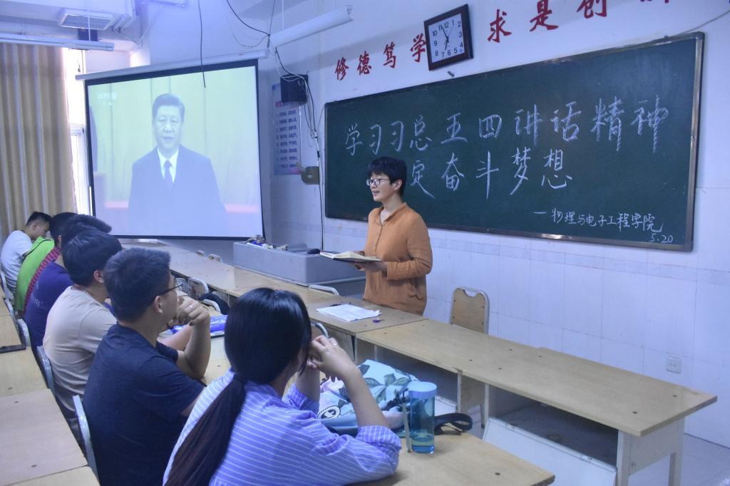 通过本次学习习近平总书记的讲话,让物电学子们明确了新时代中国青年运动的主题,新时代中国青年运动的方向,新时代中国青年的使命,要毫不动摇坚持党的领导,增强“四个意识”、坚定“四个自信”、做到“两个维护”。
