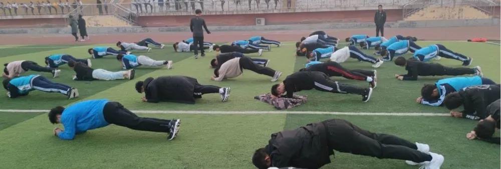 踏着月辉,迎来朝阳,绿茵场上跳跃的是一颗颗充满活力的心。清晨六点二十,越野队全体成员准时在操场集合完毕,蓄势待发。在教练带领下有序进行训练。训练内容主要分为三部分:全身准备运动、跑步热身训练和腿部肌肉训练。训练过程中,队员们听从指挥,全力以赴。