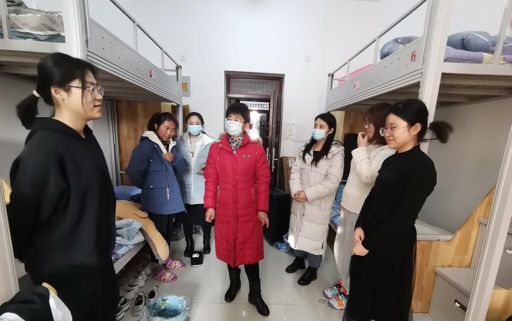新学期伊始,为更好了解beat365官网学生在校的住宿条件和生活情况,给同学们创造一个良好的生活环境,3月1日下午学工办主任任雪莲、辅导员王影、董双双深入学生宿舍,走访看望第一批返校学生。