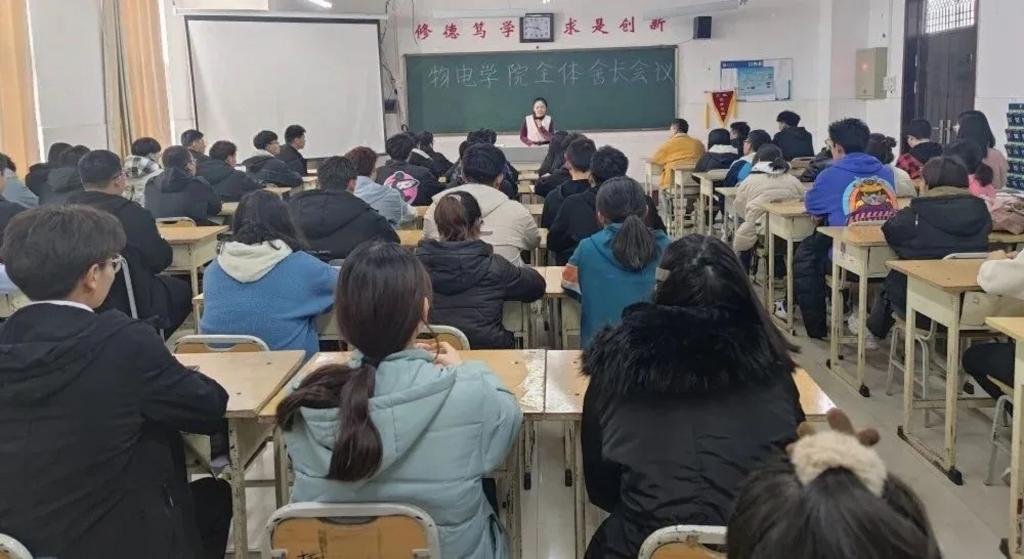 会议开始,辅导员董双双指出同学们应给予宿舍卫生一定的重视,并阐述宿舍卫生检查标准与扣分细则,倡导人走断电常态化。禁止传教、传销等恶劣行为的产生。非毕业班学生禁止退宿,注意晚归时间,切忌夜不归宿。会议中,董双双老师讲道:宿舍如家,温馨而和谐,同学们要学会保护宿舍情谊,发扬互助精神。会议最后,宿管部部长朱文杰告知舍长积极督促同学们将宿舍信息表格高效填写并及时上交。
