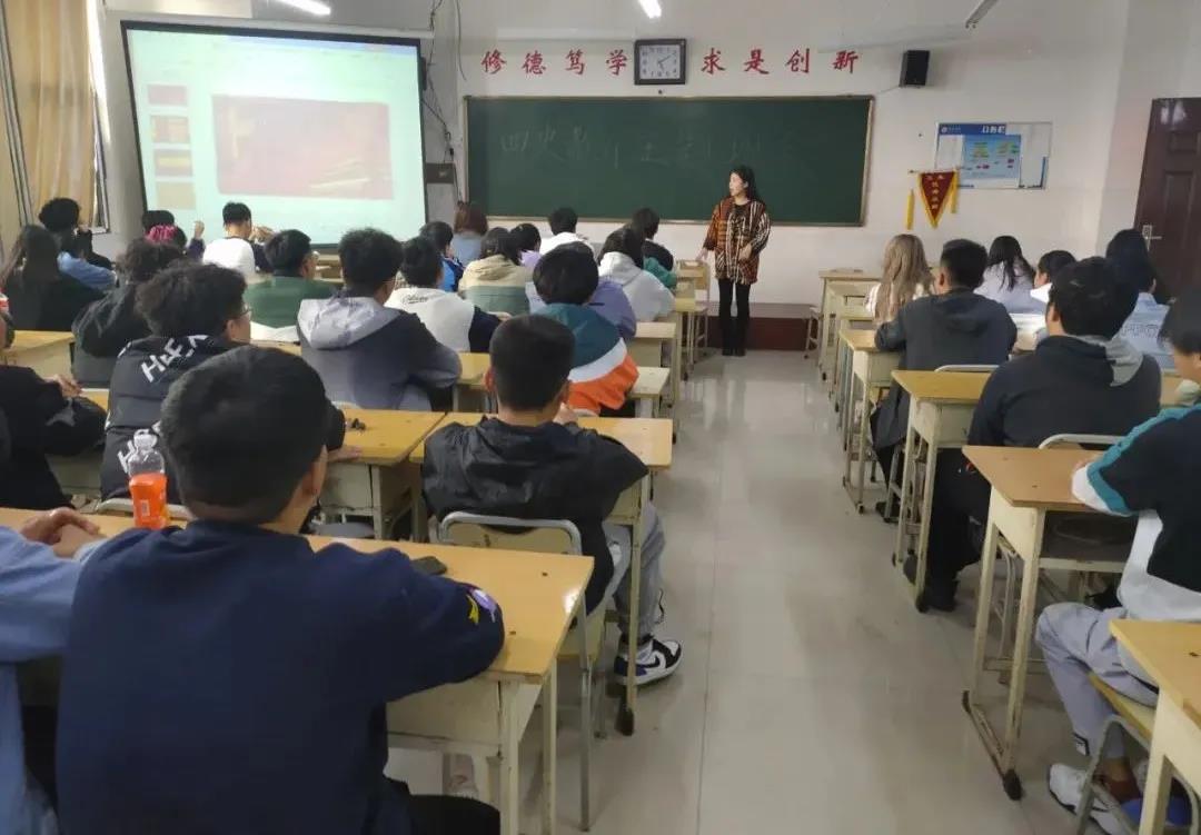 班会开始,同学们积极性颇高,会议气氛热烈。学工办主任任雪莲向同学们倾情讲述建党以来的风雨征程,同学们真实感受到了历届共产党人百折不挠、顽强拼搏的优秀品质。红色纪录片的播放为同学们带来了热血沸腾的观影体验,唤醒了大家内心深处的红色精神。