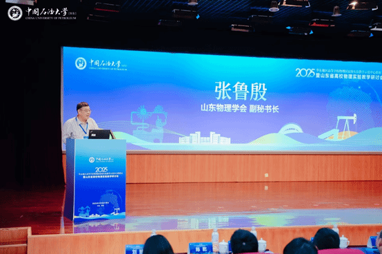 本次会议由国家级实验教学示范中心联席会物理学科组、全国高等学校实验物理教学研究会、教育部大学物理课程教学指导委员会大学物理实验专项委员会和山东物理学会主办,中国石油大学(华东)理学院承办。会议邀请了教育部高等学校大学物理课程教学指导委员会委员、大学物理实验专项委员会主任、国家级实验教学示范中心联席会物理学科组组长张增明教授等全国知名专家、华东地区物理实验教学中心负责人做物理国家级实验教学示范中心年度工作报告、AI 时代物理实验教学改革、物理实验课程内涵建设、示范中心建设、虚拟仿真实验教学项目建设及应用等系列报告。