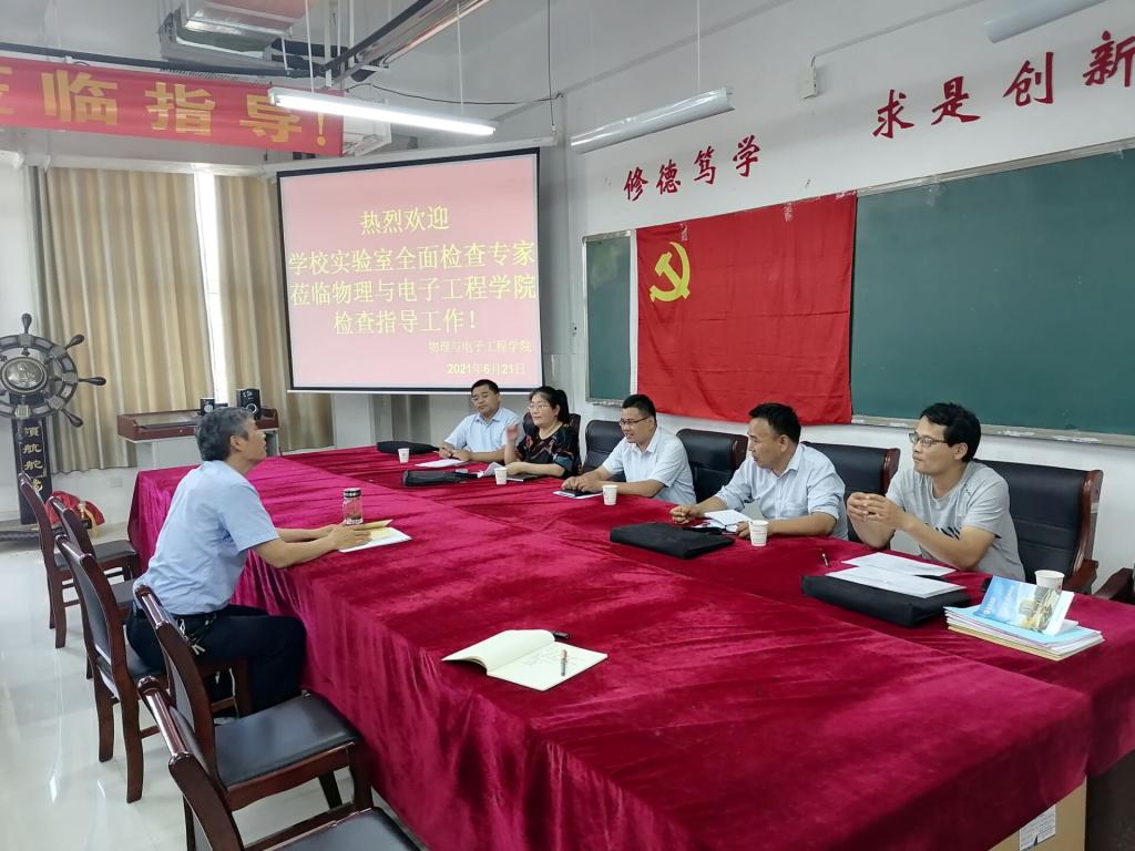 为进一步加强学校实验、实训工作,查找堵塞管理工作漏洞,全面排查安全隐患,坚决杜绝安全事故发生,保障实验教学、科研工作顺利进行,6月21日,学校实验室全面检查专家组在组长张德磊同志的带领下一行5人到beat365平台官方网站检查指导工作。