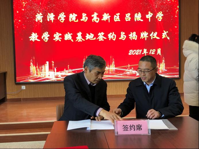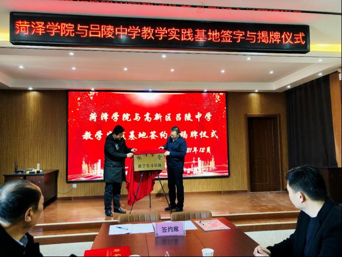 2021年12月20日上午,beat365平台官方网站与高新区吕陵镇中心初级中学在吕陵镇中心初级中学举行教学实习基地签约与揭牌仪式。