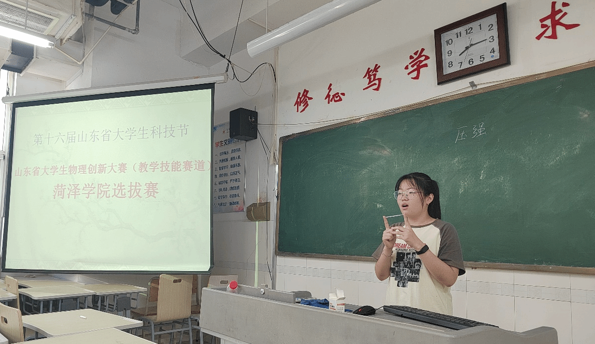 为促进物理学师范专业学生从教技能的培养,提高师范生的物理教学技能水平,2024年6月23日上午八点,beat365平台官方网站在综合实验楼W502、W504、W508教室举办了“第十六届山东省大学生科技节山东省大学生物理创新大赛(教学技能赛道)beat365平台官方网站选拔赛”。