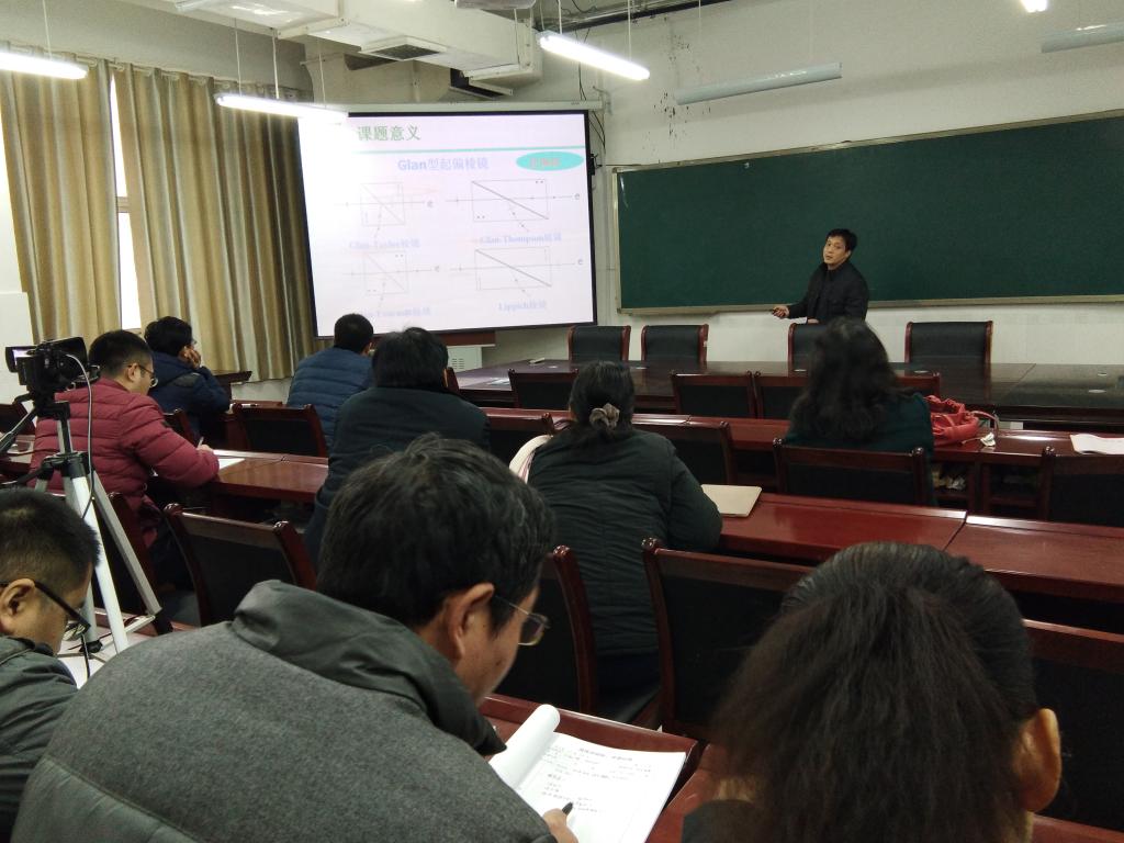 12月28日下午5点,任树锋博士在综合实验楼W201会议室做了题为“冰洲石——玻璃组合偏光棱镜的分析设计”的学术报告。beat365平台官方网站全体教师参加了本次学术报告会。