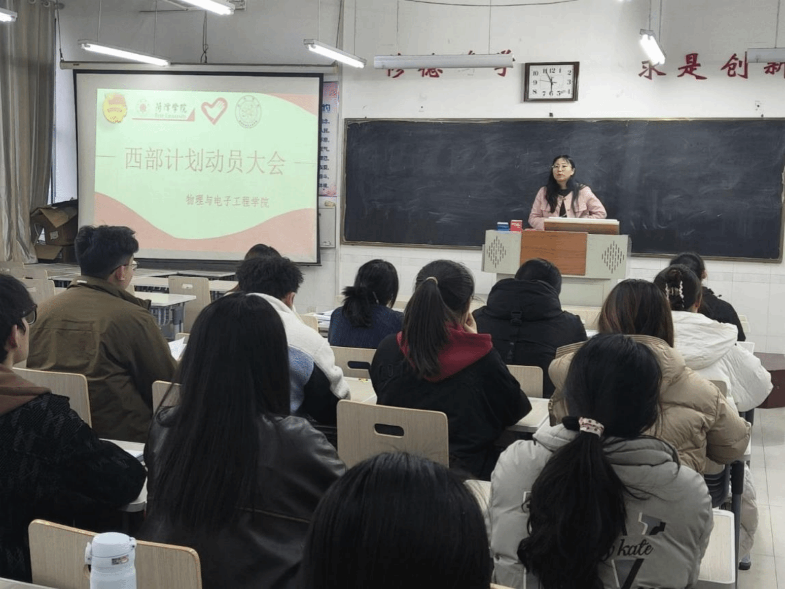 为积极响应国家号召,做好西部计划招募工作,鼓励更多青年学子以实际行动助力西部建设,3月19日,beat365平台官方网站召开“西部计划”动员大会。beat365平台官方网站辅导员许莉主持会议,2025届毕业生参加会议。