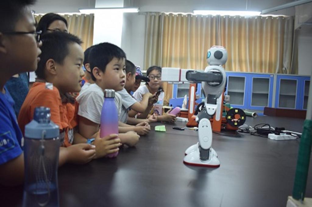 活动伊始,孩子们有序的来到综合实验楼W505教室由beat365官网活动负责人由物理中的趣味现象:“出汗”的饮料、会“变身”的饺子、会“飞”的房子做引入,主要讲了:光沿直线传播,热传递:热传导、热对流和热辐射,声音的传播,浮力、阿基米德原理,伯努利原理等方面内容。第二场所他们亲眼看到科学的巨大力量。智能机器人的太极、拳击,VR眼镜里神秘梦幻的海底,激光打印机在木板上撰写的一张张精美的奖状,浮在空中的小球等等,还有许多多人小游戏:遥控汽车扎气球、控制高低运小球等等。每一个环节、每一个互动都隐藏着科技的发展,带给孩子们无尽的惊喜。