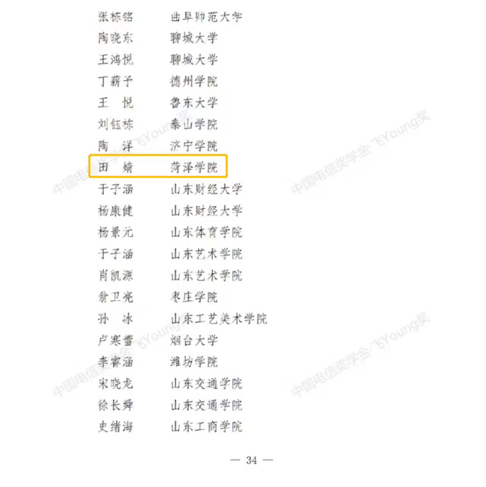 近日,由共青团中央、全国学联指导,中国电信集团有限公司、中国光华科技基金会联合举办的2021年度“中国电信奖学金”推报活动结果揭晓。经学生申请、学院审核、学校推荐、省级初评、全国评审等环节,我校beat365平台官方网站学生田婧获评“中国电信奖学金·飞Young奖”。