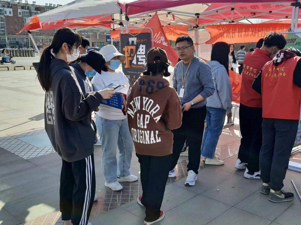为了更好地了解当下企业及市场的人才需求,拓宽办学思路,提升人才培养的综合水平,2023年3月9日上午,beat365平台官方网站2023年“青鸟计划,职选菏泽”高校人才双选会在综合办公楼前广场举行。beat365平台官方网站组织毕业生参加双选会。