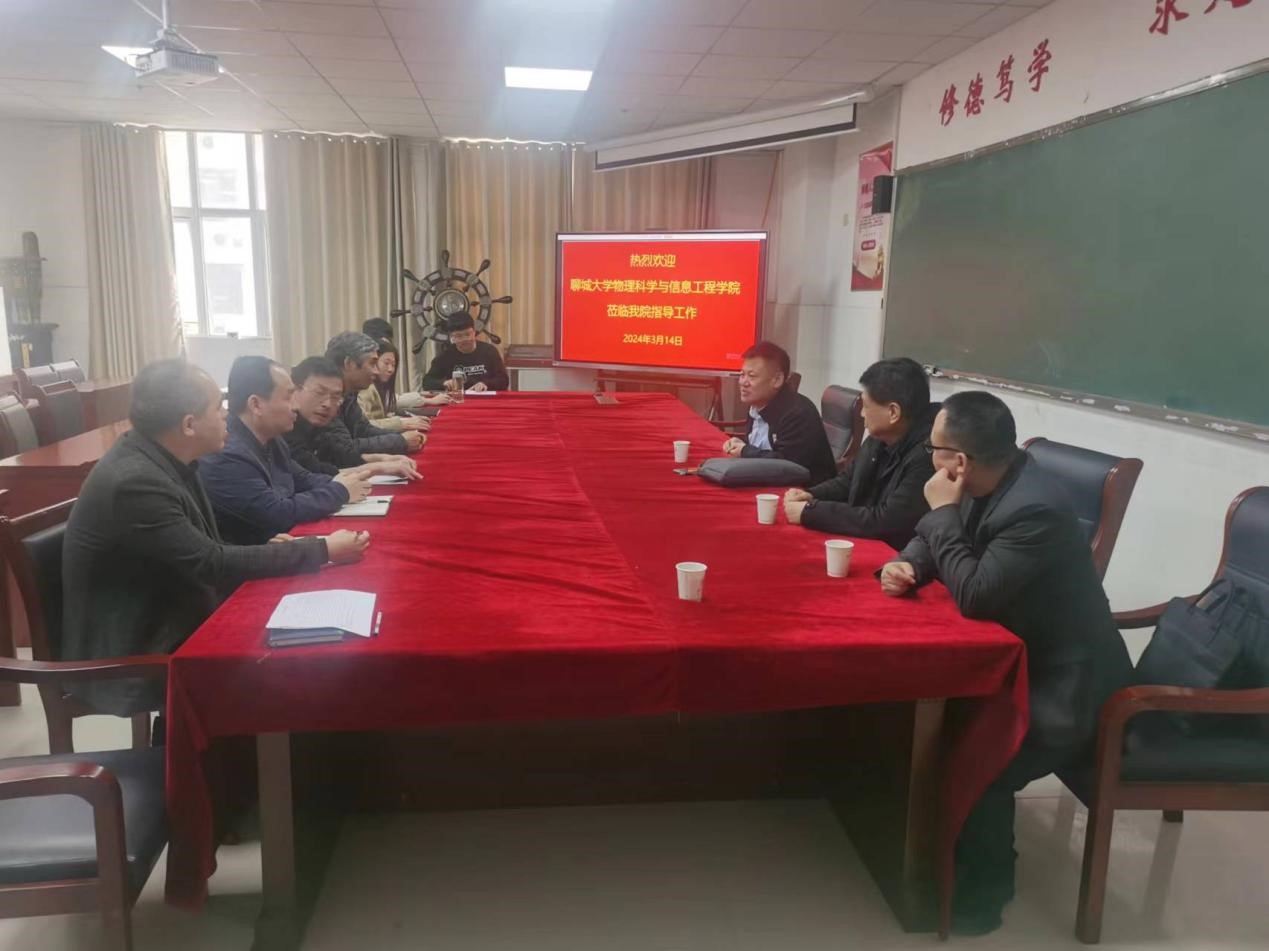 3月14日,聊城大学物理科学与信息工程学院党委书记高金华、院长王明红一行来到beat365平台官方网站进行工作交流。双方在综合实验楼W207会议室召开座谈会,围绕党建工作、学科建设、专业建设、合作办学以及大学生思想政治教育等各项工作进行深入交流。beat365官网党委书记徐鹤、院长徐兴磊及部分教师代表出席本次座谈会议。