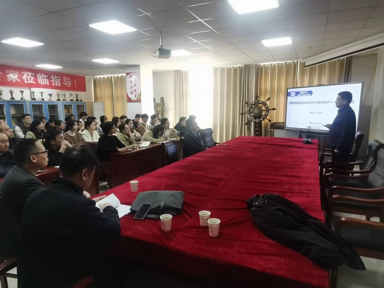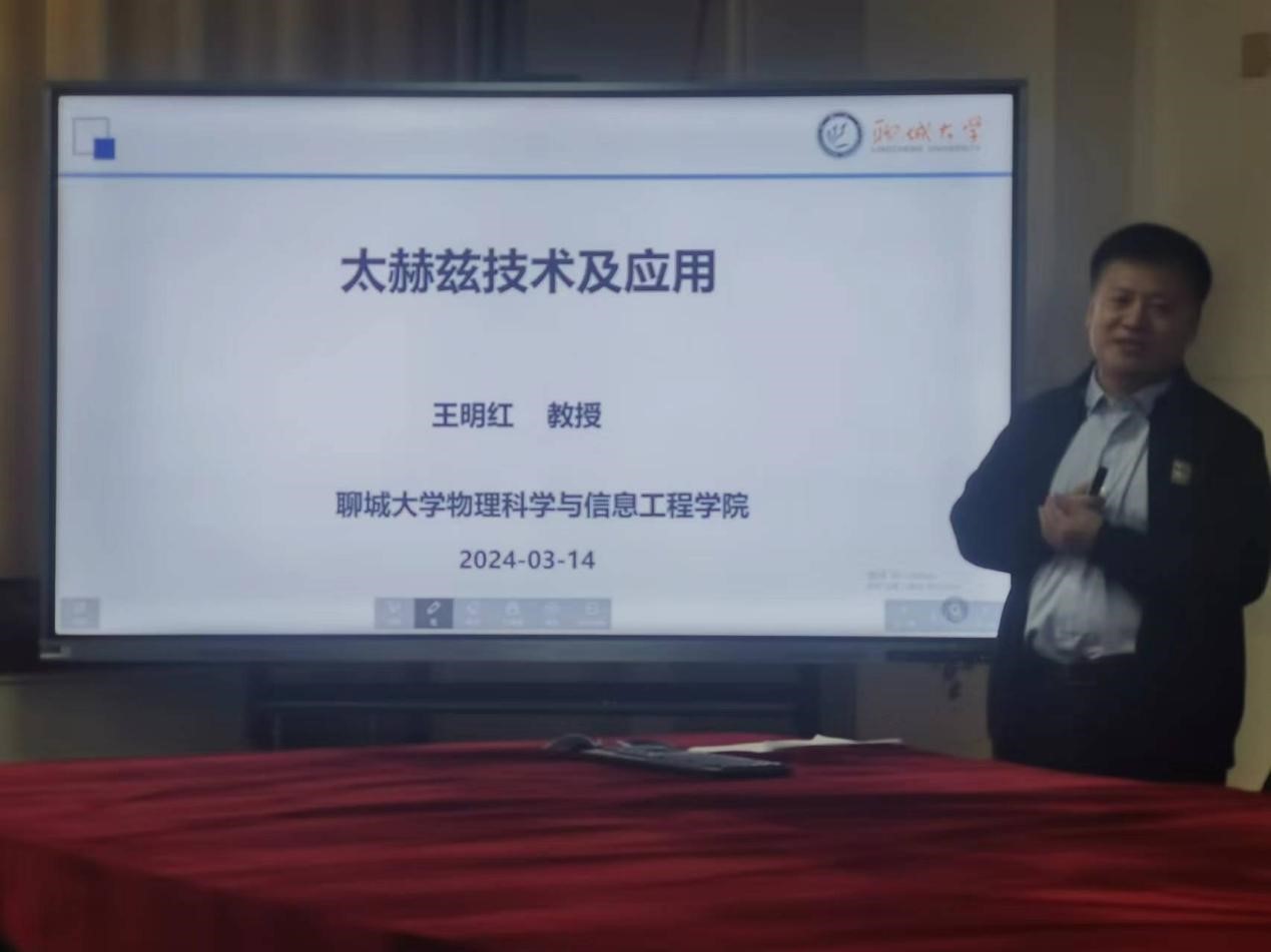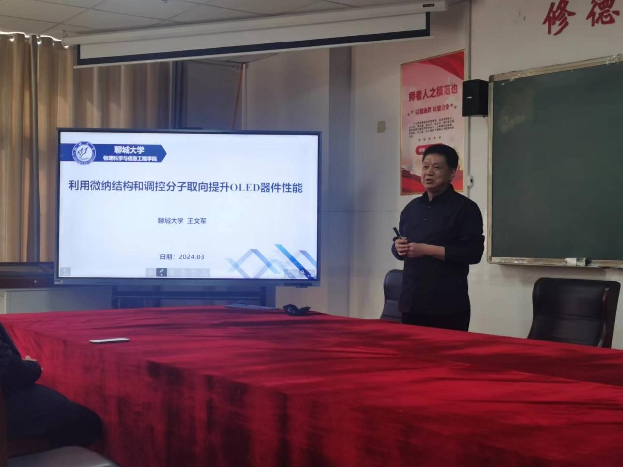 座谈会后,聊城大学物理科学与信息工程学院博士生导师王文军教授做了题为《利用微纳结构和调控分子取向提升OLED器件性能》的学术报告。聊城大学物理科学与信息工程学院院长王明红教授做了题为《太赫兹技术及应用》的学术报告。beat365官网师生代表共计60余人聆听报告,报告会由徐兴磊院长主持。