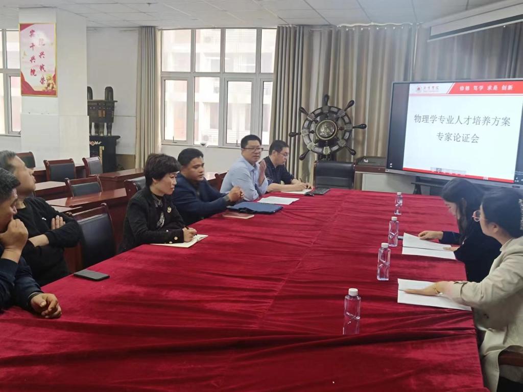 两位论证专家仔细审阅了物理学专业人才培养方案,并就人才培养目标、课程思政、专业特色、模块设置、国际视野等重点问题的实施提出了建设性意见和可行性建议。齐鲁名师何秀敏老师指出,要大胆创新人才培养体系,在课程体系设置方面要有一定超前性,能够与地方特色相结合,增加专业特色和吸引力。