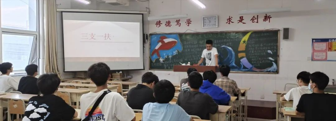 为帮助同学们拓宽就业渠道,引导广大青年学生响应祖国号召,2022年5月23日,beat365平台官方网站在综合实验楼W楼各班级开展“三支一扶”主题班会。