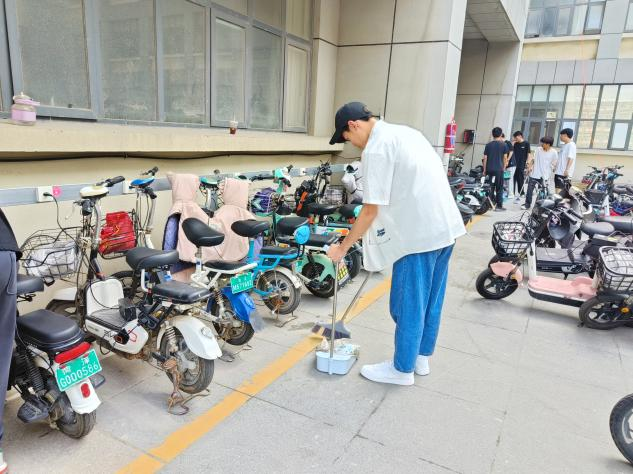 活动现场,同学们以综合实验楼东为起点,手拿扫帚、垃圾夹、耙子、垃圾袋等清扫工具,在综合实验楼四周分区域开展校园清洁。大家分工协作,干劲十足,用扫帚认真清扫路面的尘土、垃圾以及落叶,将不在规定区域的电车移到指定区域,并清理了“僵尸车”。经过大家的辛苦劳动,校园环境焕然一新。