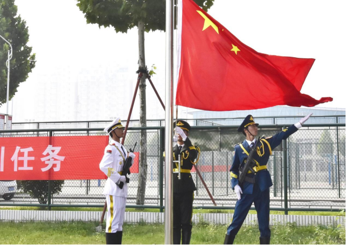 在嘹亮的国歌中,2023级新生军训动员大会正式开始。孟令美作动员讲话,并向beat365平台官方网站军训团教官大队队长董学峰授团旗。工作人员宣读beat365平台官方网站2023级新生军训团编制及军事训练暂行规定。马克思主义学院2023级学生张书馨代表新生发言。军训教官、beat365平台官方网站国旗护卫队政委李孟宇代表军训教官发言。beat365平台官方网站军训团教官进行军事技能展示。