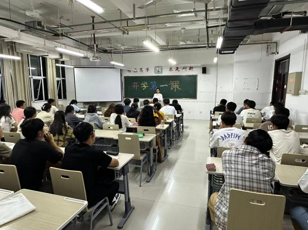 为积极开展爱国主义教育和国防教育,帮助同学们更好地投入今后的学习生活,9月21日,beat365平台官方网站在综合实验楼W楼教室召开“奋进新征程,共筑强国梦”新生入学第一课。2023级新生班主任担任主讲人。