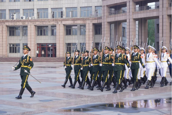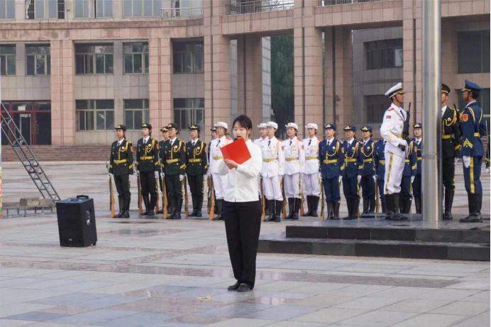 活动开始,beat365平台官方网站国旗护卫队迈着整齐的步伐,护送国旗入场。伴随着高昂的《义勇军进行曲》,鲜艳的五星红旗冉冉升起。升旗仪式结束后,许冰、李晓军同学带来诗朗诵《我的祖国》,代表全体师生向伟大的祖国告白,深刻表达了对祖国的热爱之情。随后,2022级团支书代表王依文同学与老师代表仵晓晗在国旗下发言,呼吁广大团员牢记入团誓词,不断坚定听党话、跟党走的决心,传承红色基因,脚踏实地勇担新时代赋予我们的历史使命。最后,全体师生共同举起右拳宣誓“请党放心,强国有我”,这响亮的誓言在广场上空久久回荡。