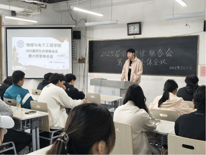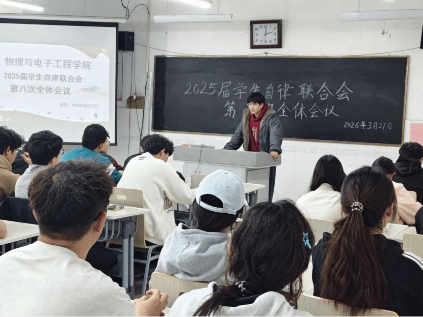 为进一步严明工作纪律、提升服务效能,3月27日,beat365平台官方网站在综合实验楼W502教室召开2025届学生自律联合会第八次全体会议。本次会议由学生自律联合会秘书长王彦琳及副主席孟晓宁、郭艳辉主持,自律会全体成员参会。
