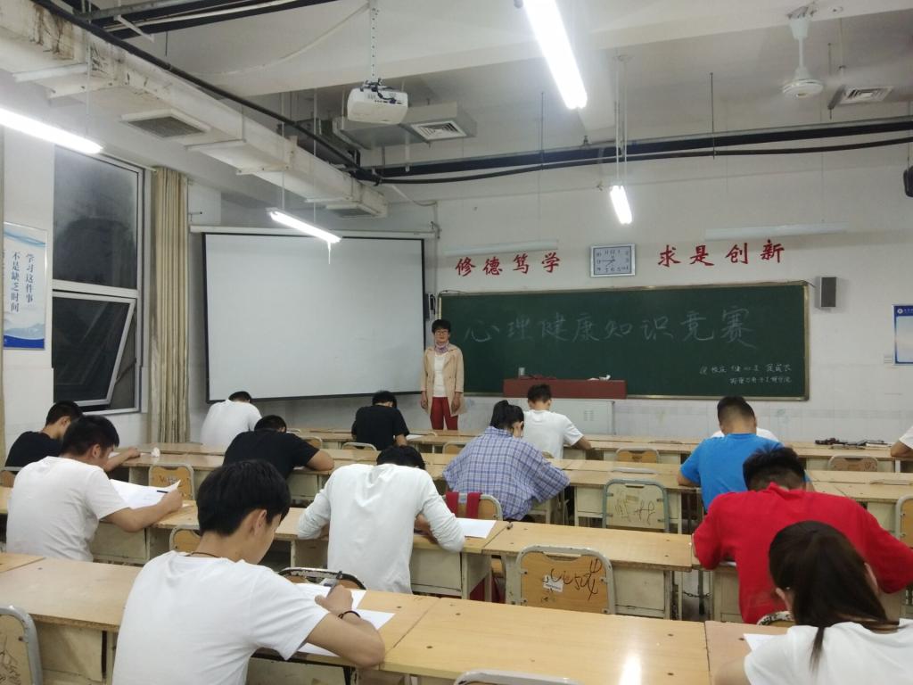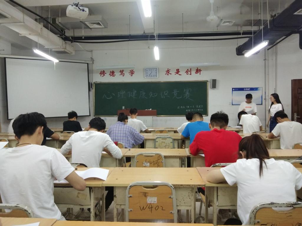 本次比赛以闭卷笔试的形式进行,考题主要由基础题和综合题目两部分组成。其中,综合题目中的案例分析题,密切结合大学生在学校生活中可能遇到的问题和情景,着重考察了学生对心理知识的掌握和自我心理的调控和支配能力。考试现场紧张而秩序井然,同学们有序参与、沉稳答题。