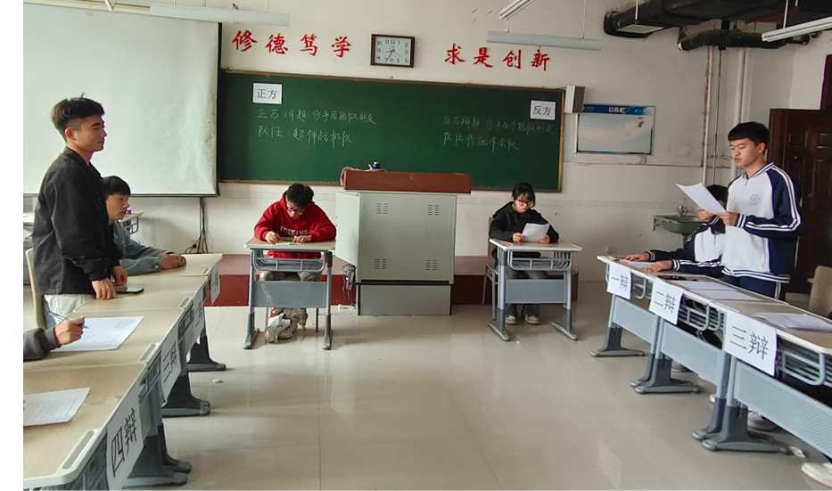 此次辩论赛,提高了同学们的思维能力,培养了同学们的团队合作意识,有利于形成一种勤于思考、敢于思辨、善于思辨的良好学习氛围。