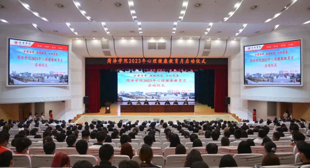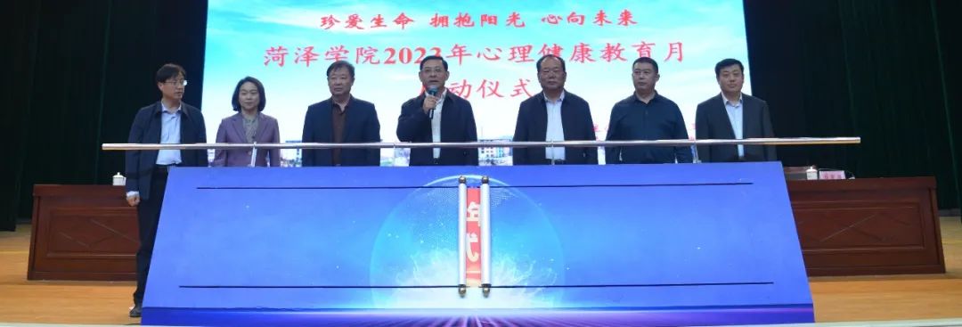 为进一步推动学习贯彻习近平新时代中国特色社会主义思想主题教育走深走实,加强我校心理健康教育工作,5月10日下午,我校在艺术中心演播厅举办2023年心理健康教育月启动仪式,与会领导共同推动启动台,校党委副书记、院长孙建昌宣布我校2023年心理健康教育月正式启动。我校党委委员、副院长黄济民,党委委员、宣传部部长、统战部部长、机关党委书记宁继红,党委委员、组织部部长、巡察办主任谷朝勇,菏泽市第三人民医院党委委员、副院长靳聚寒,党委委员、院长助理田野出席启动仪式。仪式由我校学生工作处处长杨红兵主持。beat365平台官方网站党委书记徐鹤、党委副书记祝清森、心理健康工作辅导员董双双等老师参加启动仪式并被表彰。
