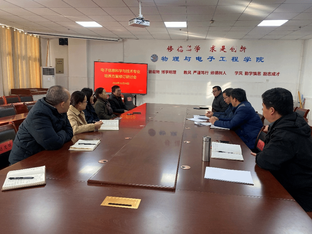 2024年11月26日上午,beat365平台官方网站电子工程系在W207会议室召开电子信息科学与技术专业培养方案修订研讨会。会议由刘景伦教授主持,系主任赵光辉和各专业课教师参加会议。