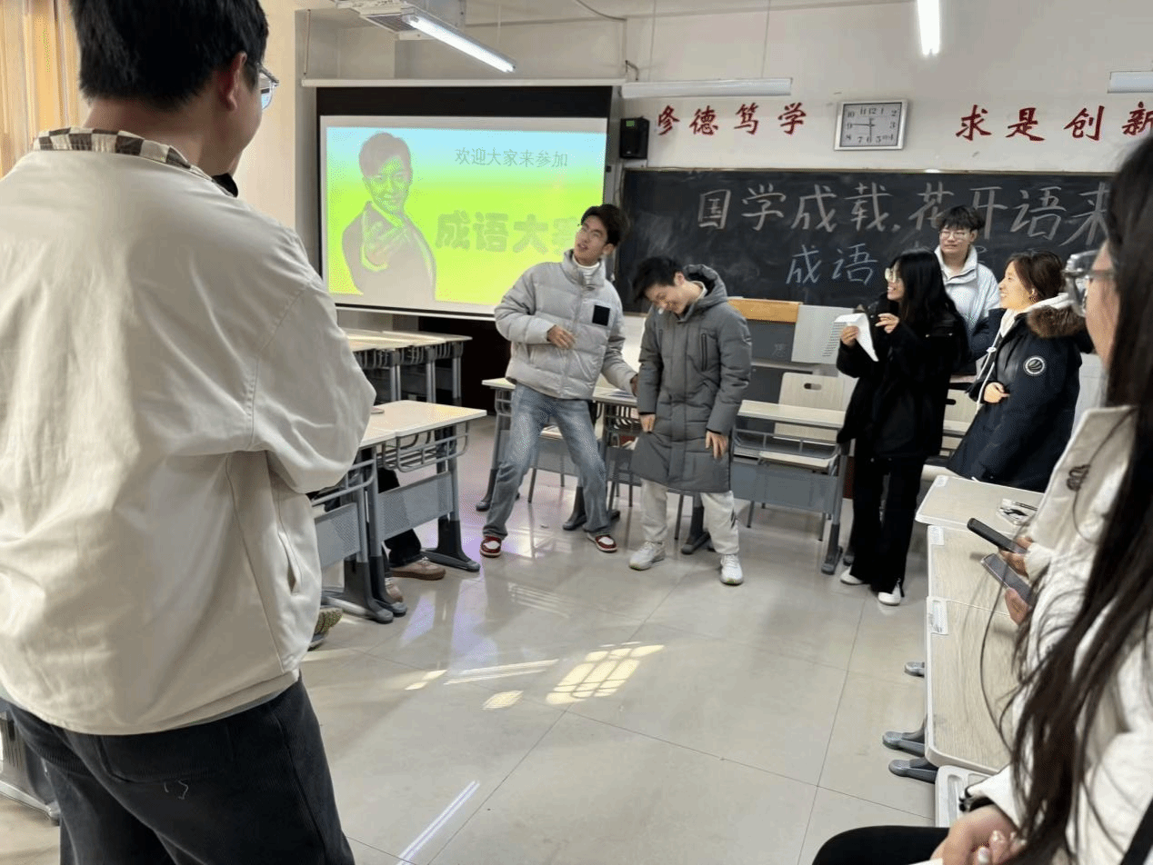 活动伊始,由主持人介绍参赛队伍、比赛规则、流程及奖项设置。本次成语大赛精心设置了多个环节,从不同维度深入考查参赛者的成语储备、理解运用以及团队协作能力。经过数轮激烈比拼,有三支队伍进入决赛,每支队伍须选取一个成语进行表演,评委们根据表演的内容、成语的理解深度以及与现代生活的结合程度等多方面决定最终获胜队伍。