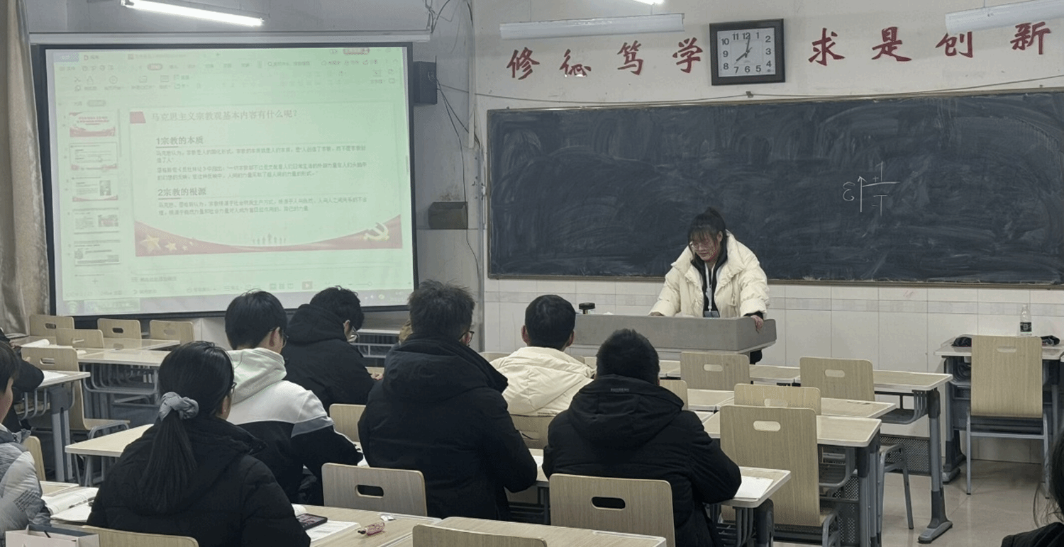 讲座上,主持人们通过精心制作的 PPT,以通俗易懂的语言,结合实际案例向同学们讲解了宗教的起源、种类以及宗教与信仰的区别等基础知识。讲座内容具体详实,讲授方式生动风趣,有效提高了同学们了解宗教信仰的基本常识能力。同学们认真聆听,积极思考,并就相关问题展开了热烈讨论。