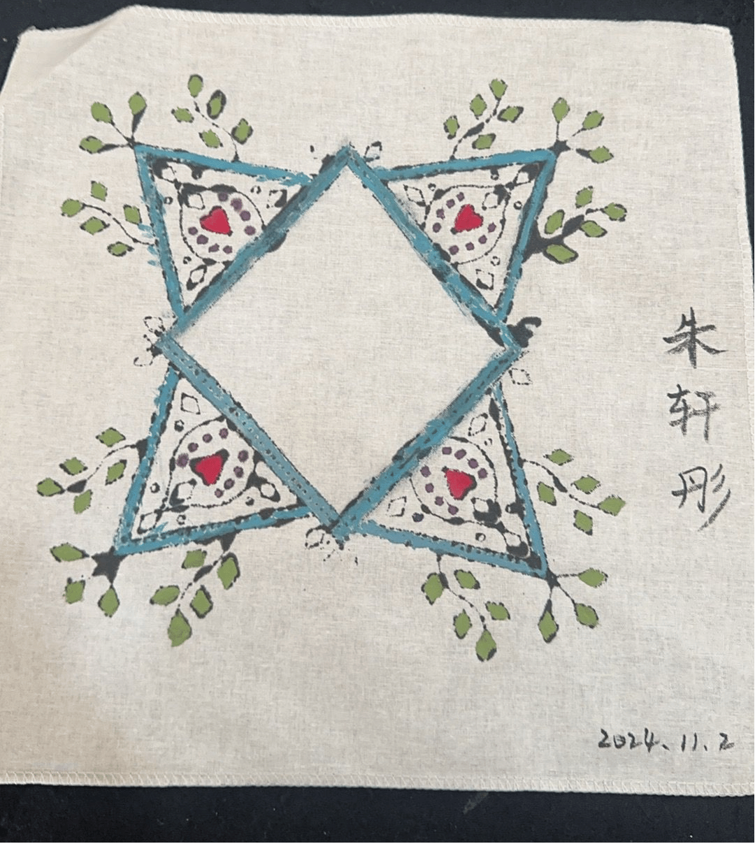 在喀什地区的英吉沙县具有中国四大非遗物质文化,分别是土陶,小刀,达瓦孜和模戳印花。我们有幸参访国学书院,并体验了一次模戳印花。书院的老师听说我们是来新疆支教的老师,非常友好的向我们介绍了模戳印花的工艺流程,并亲自示范教我们印花,这对我们来说是非常棒的体验。