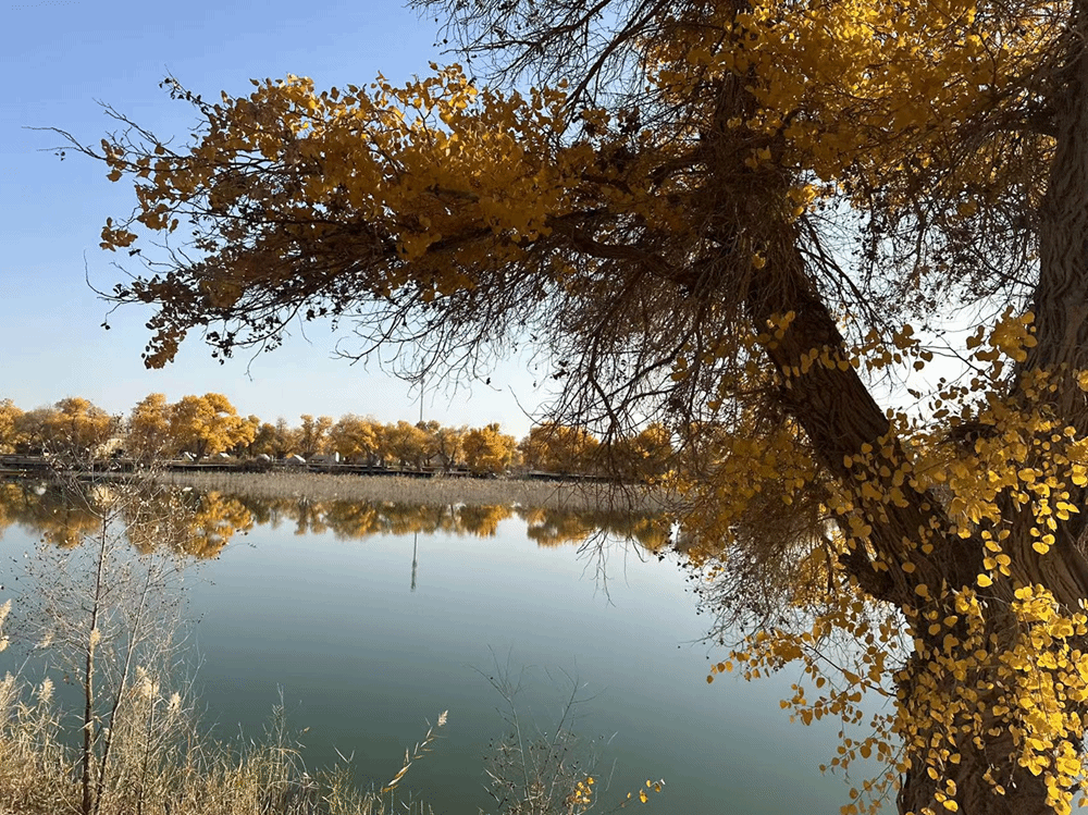 周末时光生活也非常丰富,带队老师冯书记组织我们一起去巴楚看胡杨林。步入胡杨林,仿佛踏入了一个金色的梦境。胡杨林用三千年的守望,演绎着生命的传奇,沙漠的脊梁,坚韧的象征。每一棵胡杨都像是一本古老的书,记录着岁月的沧桑与变迁,用“活着一千年不死,死后一千年不倒,倒后一千年不朽”的坚韧,书写着生命的传奇。穿上鲜艳的衣服,步入这片金色的世界,胡杨的坚韧、芦苇的柔美、河水的清澈,与我们共同编织出一幅幅动人心魄的画面。