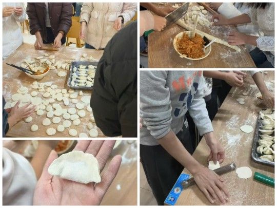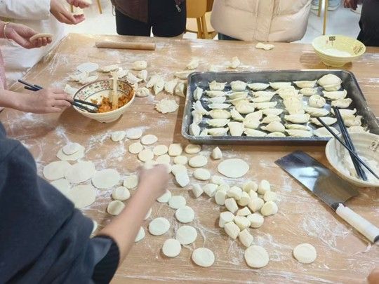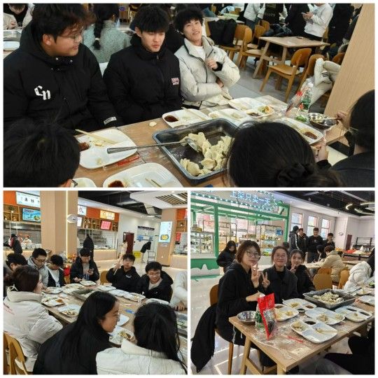 活动现场被同学们的热情所“点燃”,他们边包边轻声交流着各自所知晓的冬至习俗,互相分享着生活中的开心事,现场氛围轻松而融洽。随着一盘盘承载着欢乐与心意的饺子摆满餐桌,同学们围坐在一起,迫不及待地品尝自己亲手包的饺子。在热气腾腾的饺子里,不仅有食材本身的鲜香,更有大家共同参与、共同付出后收获成果的喜悦。