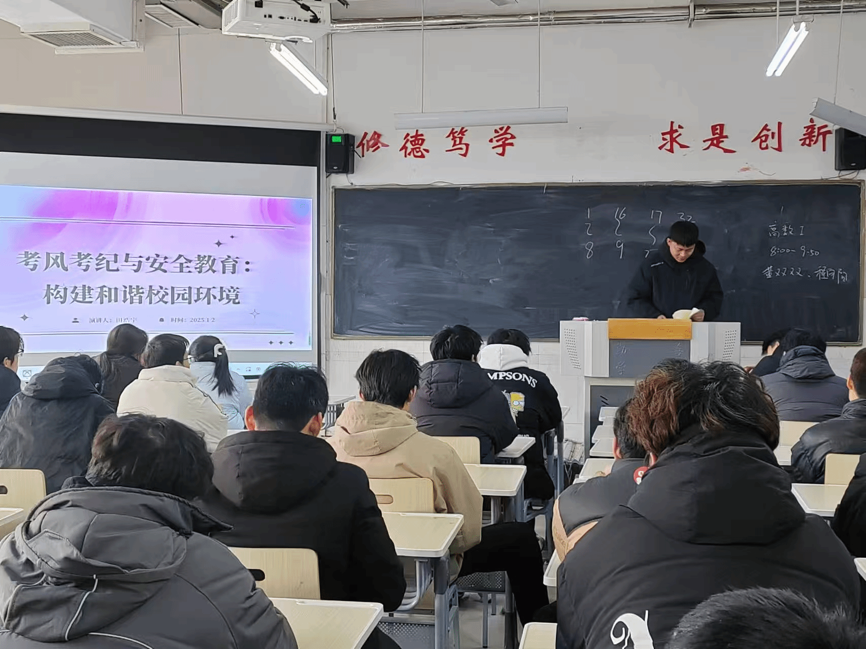 为深入推进学院学风建设,加强假期安全教育,提升学生诚信与安全意识,1月2日,beat365平台官方网站在综合实验楼W楼开展考风考纪与假期安全主题班会。