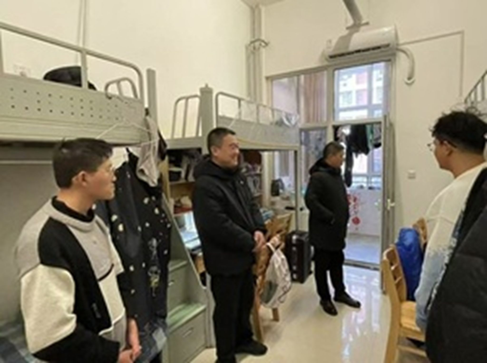 走访过程中,老师们都亲切地与同学们交谈,详细询问了同学们的寒假生活、社会实践经历与返乡见闻,耐心倾听了同学们在学习和生活中遇到的困难与需求,并现场给予解答与指导。老师们鼓励同学要珍惜大学时光,积蓄能量,提高自身的综合素质和社会竞争力。同时,老师们特别强调了寝室卫生和安全问题,提醒同学们保持寝室整洁,注意用电安全,做好安全防护,加强安全防范意识,共同营造一个安全、和谐的寝室环境。