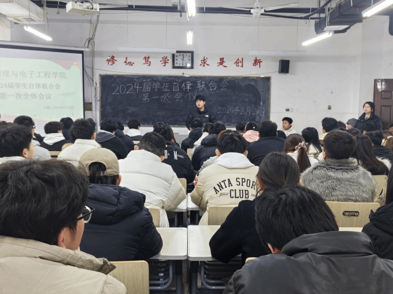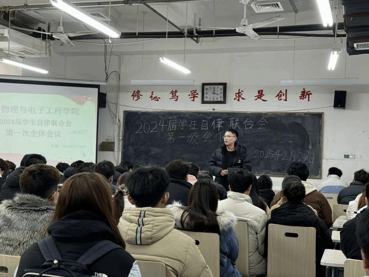为了确保新学期各部门工作顺利开展,保障工作平稳有序推进,2月26日,beat365平台官方网站在综合实验楼W502教室召开2024届学生自律联合会第一次全体会议。辅导员李晨出席此次会议,学生自律联合会主席戴竣彦主持会议。2024届自律联合会全体成员参加。