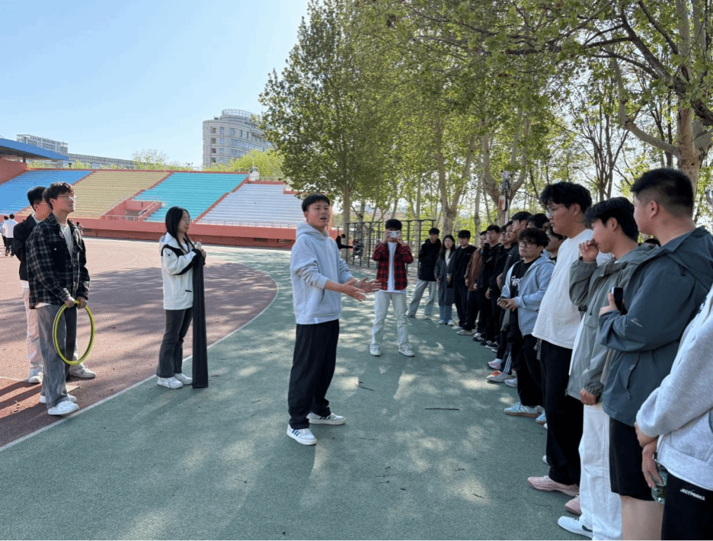 活动伊始,同学们分成两组,一组进行的是“一穿到底”游戏。游戏开始,同学们迅速手拉手,围成一个圈传递圆环,随着不断的尝试,彼此间默契渐生。大家身体灵活地配合着圆环的移动,动作越来越流畅。另一组同学进行的是“不倒森林”游戏。每位同学手持一根塑料棍,围成圆圈。在规定口令下达后,同学们小心翼翼地移动,去接住相邻同学松开的塑料棍。同学们不断调整自己的动作和节奏,配合变得越来越默契。在游戏过程中,同学们深谙游戏之魅力,尽享欢乐时光,更是在潜移默化中不断强化了团队协作精神与集体意识。
