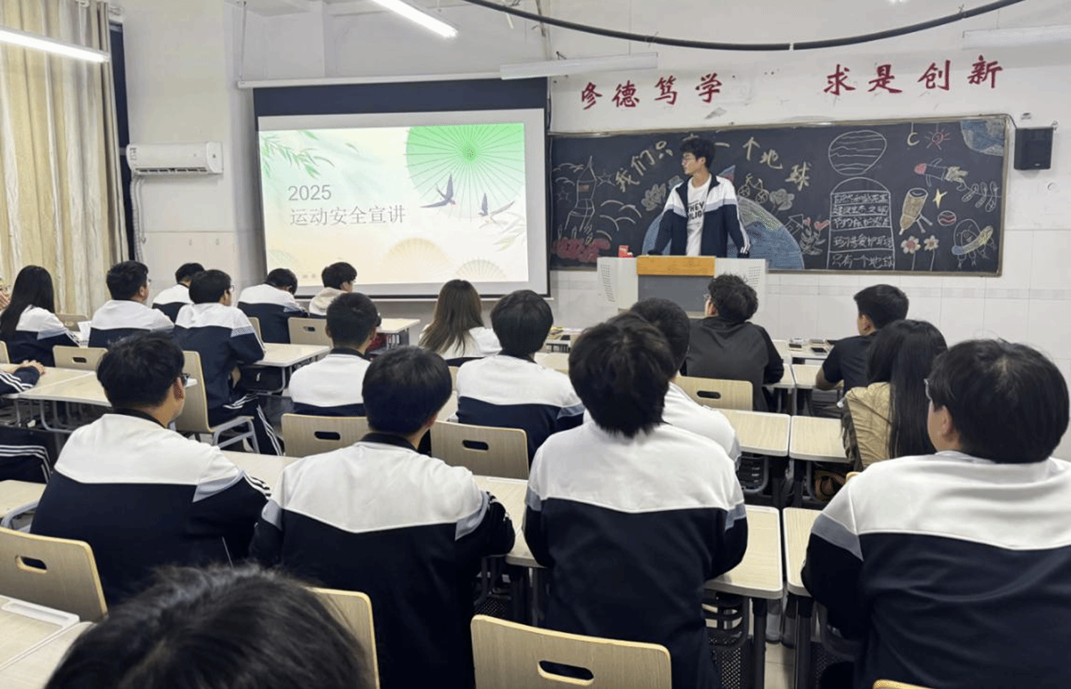 宣讲活动通过理论讲解、案例分析与互动实践相结合的方式,全面普及科学运动理念与风险防范知识。各班宣讲人以“生命因运动而精彩”为切入点,结合真实案例强调科学运动对塑造健康体魄和积极心态的双重价值,指出运动安全是享受运动的前提条件,倡导学生运动要循序渐进、量力而行,避免“突击式健身”“超负荷训练”等误区,警示学生关注身体信号,在出现头晕、疼痛等异常状况时及时中止运动。多元化的互动形式深化了学习效果,帮助学生们树立“安全无小事”的意识,引导他们在日常锻炼中注重细节,让运动真正成为可持续的健康生活方式。