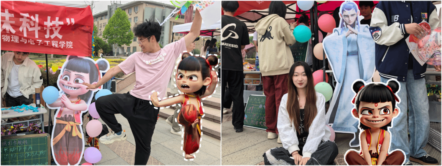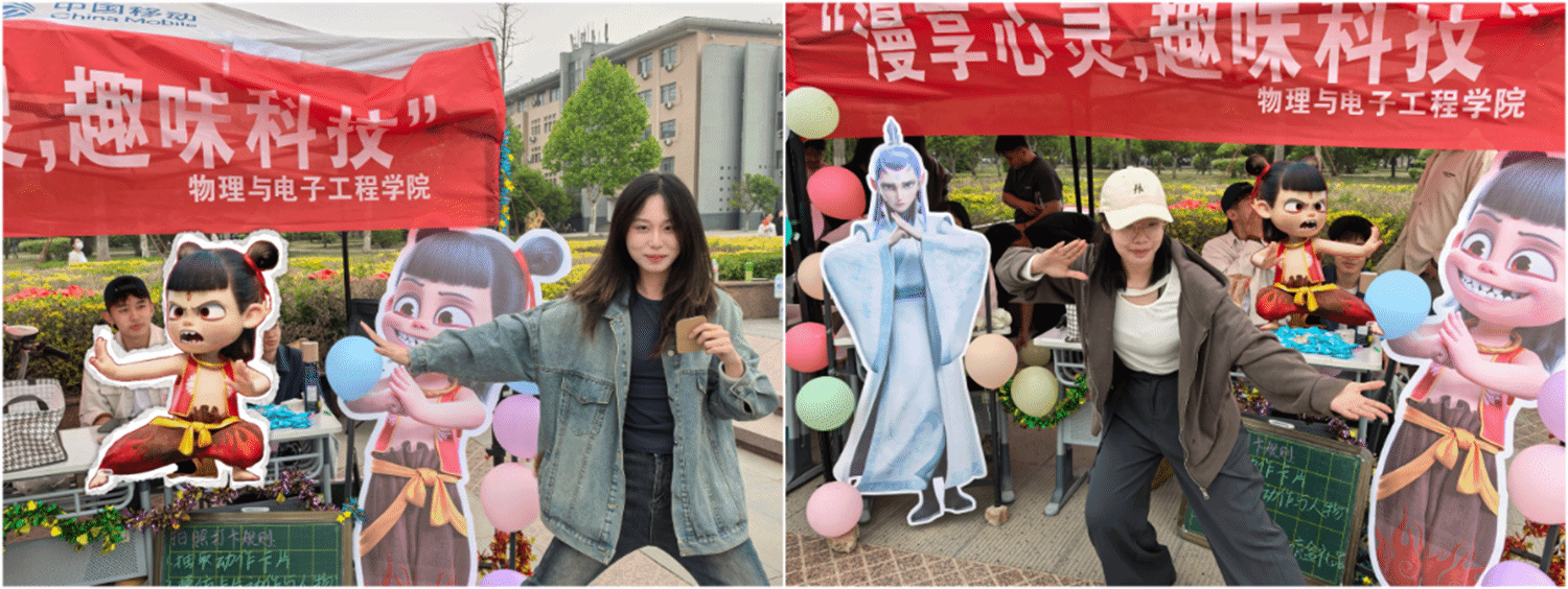 活动现场,beat365平台官方网站展区以“漫享心灵,趣味科技”为主题惊艳亮相。红底白字的主题横幅与“哪吒”“敖丙”的炫彩卡通立牌构成科技感十足的视觉焦点,吸引众多师生驻足,展区特别设置“抽取动作卡片模仿”游戏互动环节,参与者通过随机抽取动作卡片完成即时模仿挑战,趣味性的肢体互动配合拍照打卡机制,迅速点燃现场气氛,拉近了各位同学之间的距离。为凸显学科特色,学院融合专业元素,特别设计了两款专属礼品——融入电路板元素的造型糖果和随机装载科技模型的盲盒,新颖的互动设计使展位保持较高人气,现场洋溢着热烈的活动氛围。