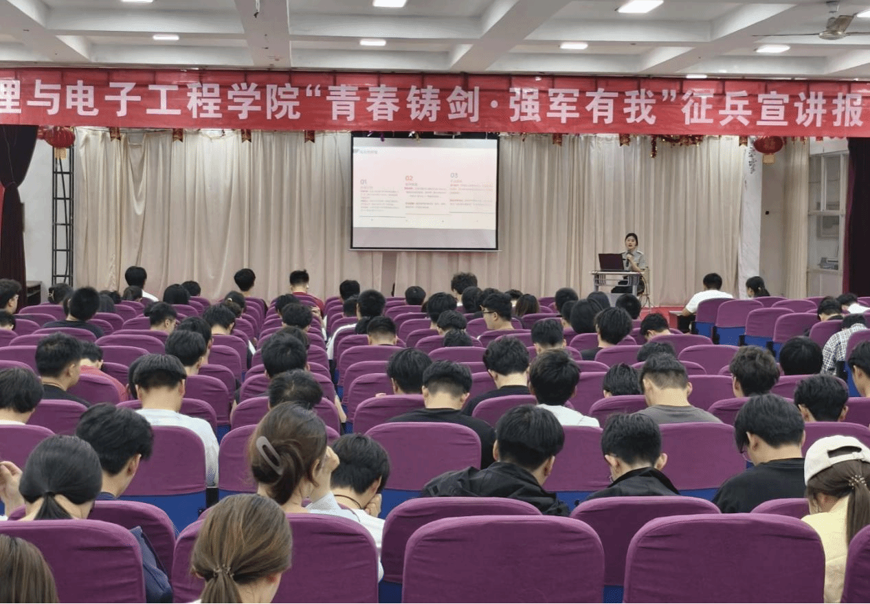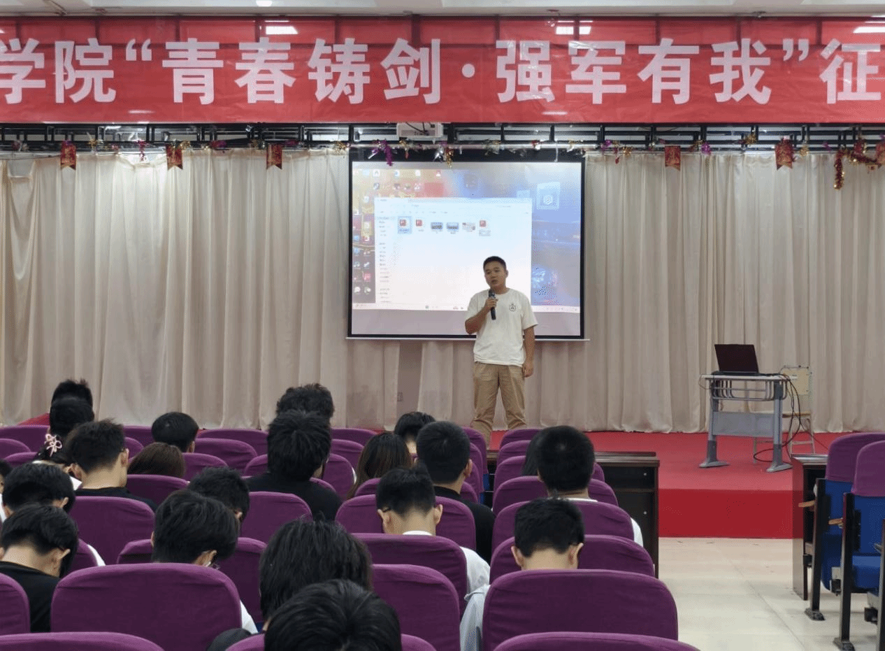 为深入贯彻落实习近平强军思想,厚植青年学子爱国情怀,强化新时代青年责任担当,切实打通征兵政策宣传 "最后一公里",5月12日,beat365平台官方网站在体育馆报告厅开展“青春铸剑,强军有我”征兵宣讲活动,beat365平台官方网站辅导员李晨出席本次活动。