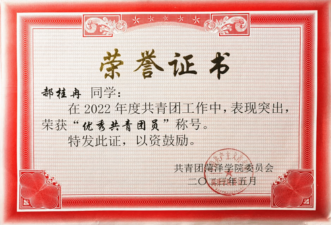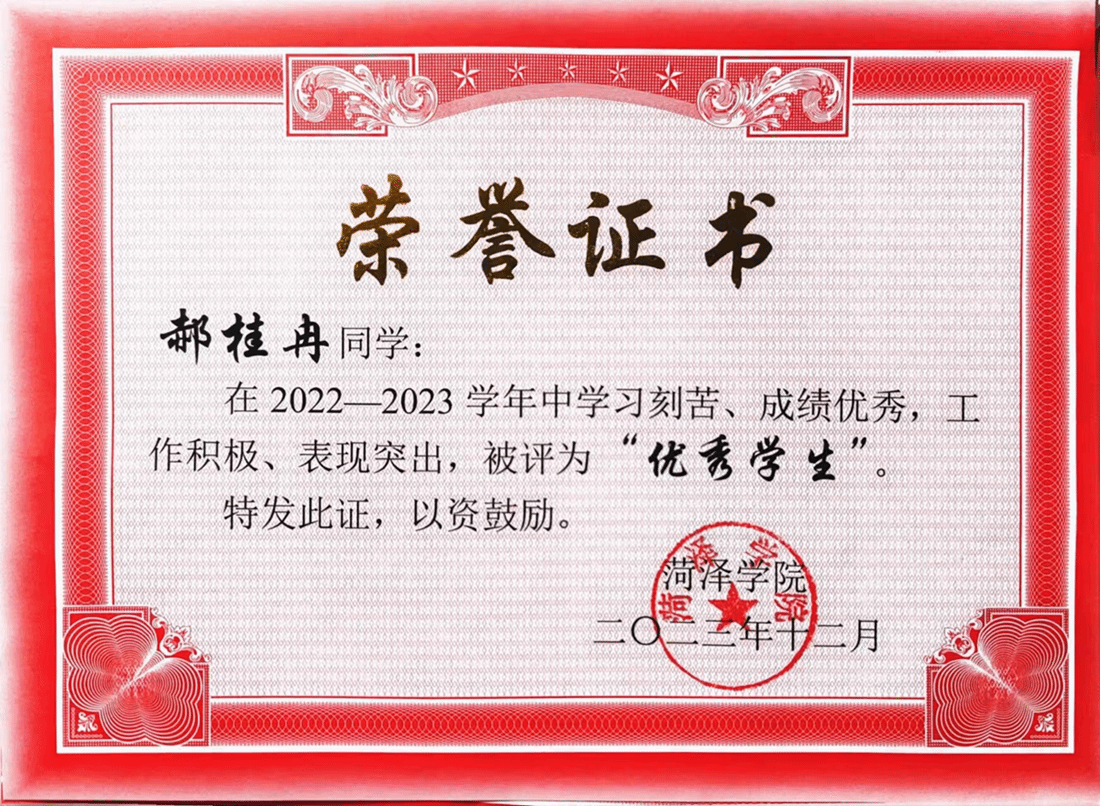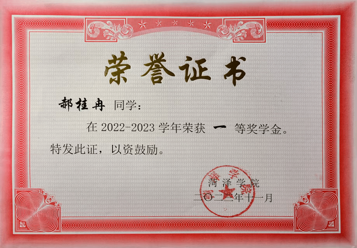1.自入学以来,郝桂冉始终明确自己的目标,努力钻研,认真学习,在学业中取得较好的成绩,多次获得校级一等奖学金,并荣获“优秀学生”荣誉称号。参与项目《钙钛矿太阳电池中螺烯类空穴传输材料的理论设计和界面性质研究》获得山东省省级立项,在团队合作中不断增强自身责任感。她积极参加大学生职业规划大赛、大学生创客大赛及光电竞赛等多项创新创业竞赛,认真听取老师及同学的建议,努力发挥专业优势,获得2023年首届全国大学生职业规划大赛beat365平台官方网站选拔赛“成长赛道”一等奖。