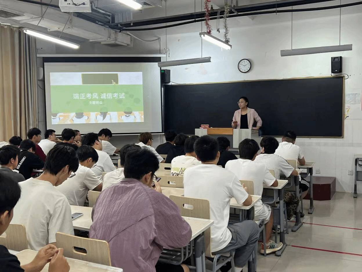 班会上,各班级班主任带领学生认真学习《beat365平台官方网站学生违纪处分条例》与《beat365平台官方网站考试工作条例》,从考试流程到作答规范,从违规界定到处罚尺度,都一一细致解读,让大家对作弊后果有了深刻的认识。通过案例分析与讨论,端正考试态度,立志以诚信为本,坚决杜绝作弊行为,在班级内营造出积极向上、风清气正的备考氛围。
